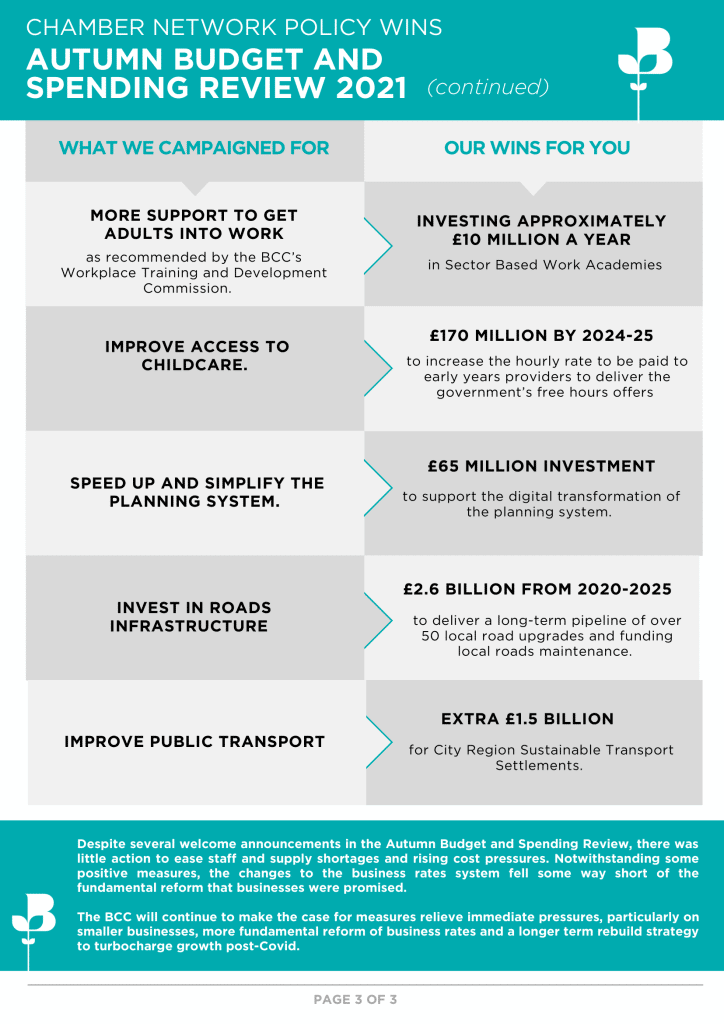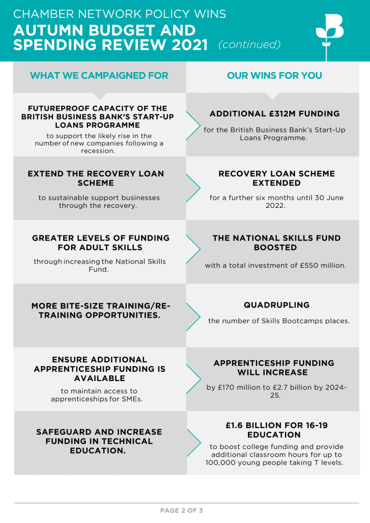 Chamber Network Policy Wins – Autumn Budget 2021