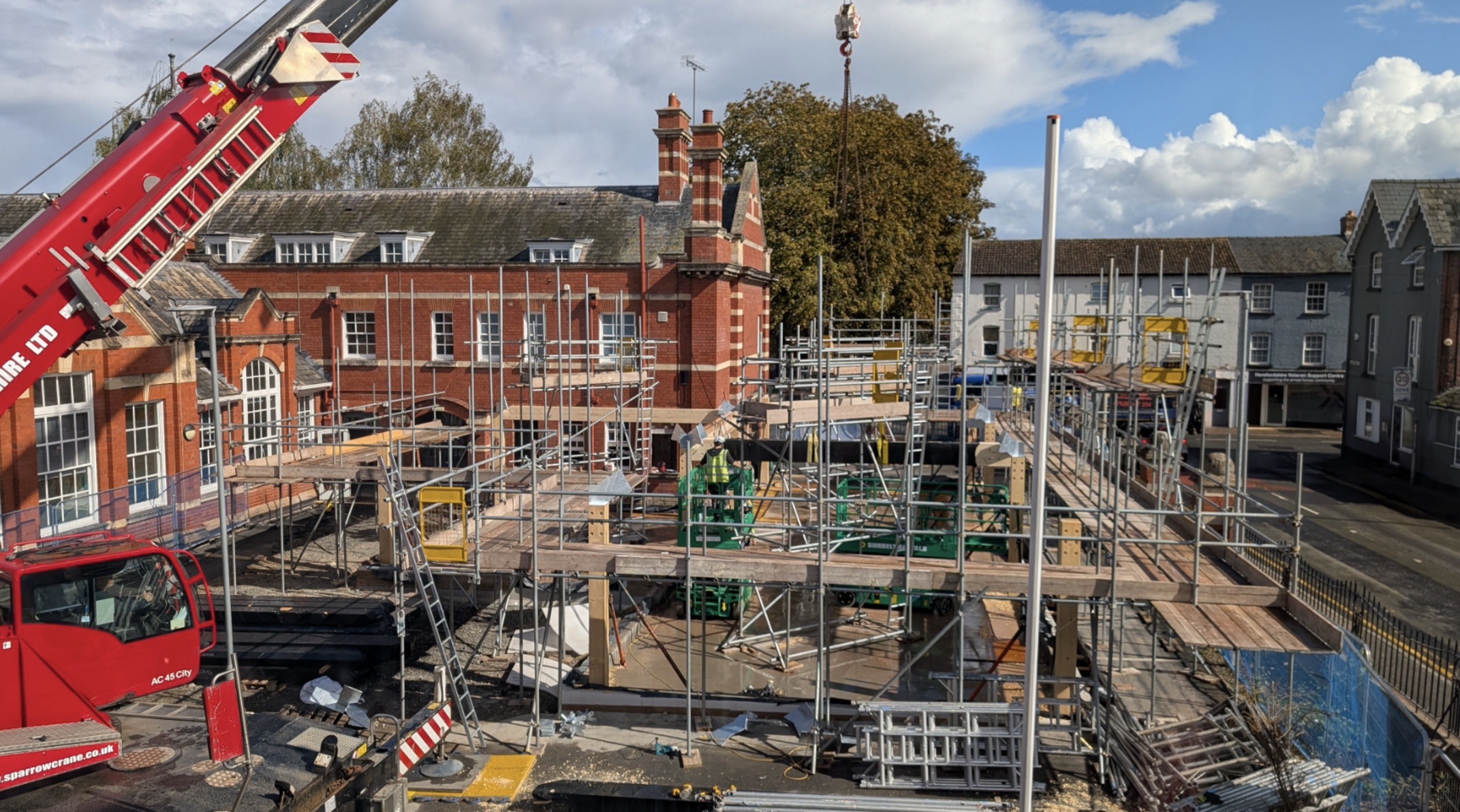 The new centre will include 180square metres of new space and will renovate 90square metres of an unused part of the existing Edwardian building. A hybrid glulam beam made from UK grown timber is to be installed this week as part of a project led by NMITE’s Centre for Advanced Timber Technology (CATT) with Edinburgh Napier University on Building from England’s Woodland. The project aims to demonstrate the viability of English grown timber in modern construction methods. Drones will be used to capture overhead footage of this stage of the build with timelapse from the camera already mounted on site.