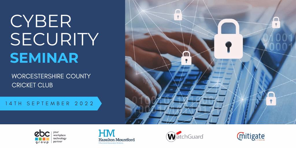 EBC Group will be holding a Cyber Security Seminar on 14th September at Worcestershire County Cricket Club to help businesses learn more about the latest cyber security threats and how they can protect themselves against cyber crime. Cyber threats are evolving at a rapid rate so basic protection is no longer adequate to protect your business. EBC Group and our cyber security partners, Watchguard and Mitigate Cyber will speak about the current security risks your organisation is facing and the ways in which you can mitigate them.