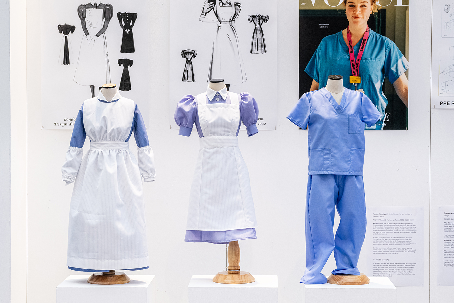 The exhibition is a showcase of Arts and Humanities Research Council funded research into the development of a sustainable uniform for nurses and surgeons.