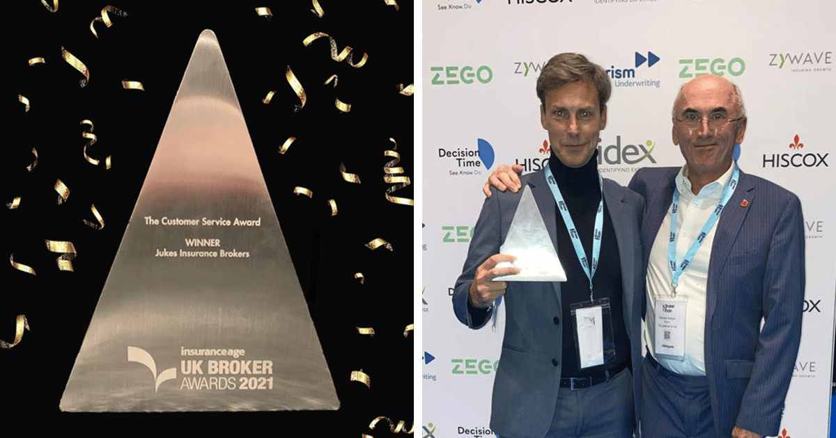 Bromsgrove-based family brokerage Jukes Insurance Brokers scooped the Customer Service Award in the prestigious 2021 UK Broker Awards last week.