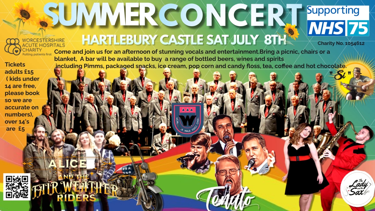 Join Worcestershire Acute Hospitals Charity for a fantastic Summer Concert – bring a picnic, chairs or a blanket, relax and enjoy an afternoon of stunning vocals and entertainment.