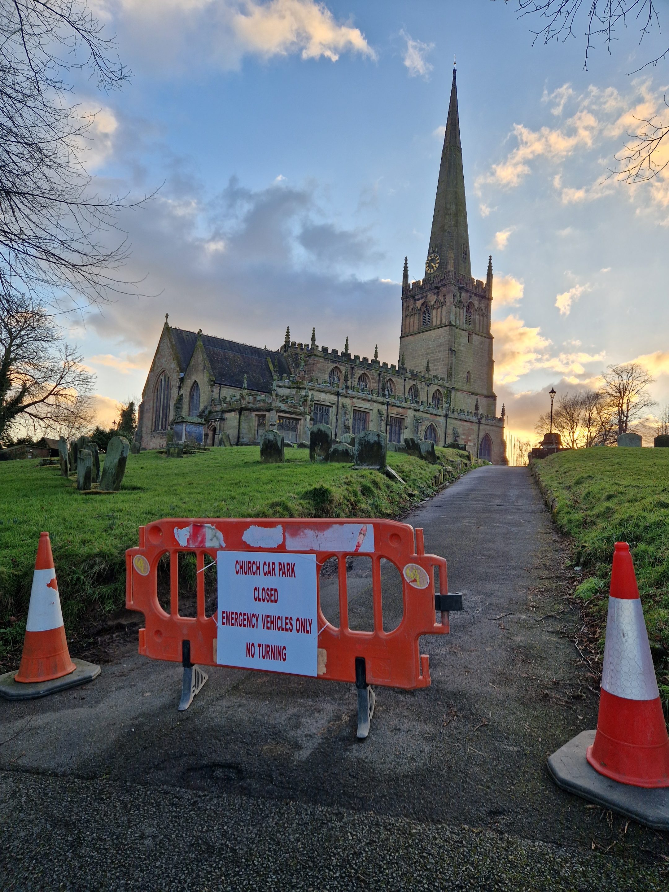 The works compound will use all the car parking space at the east end of the church meaning there is no vehicle access to the church whilst the works take place. Pedestrian access on Sunday will be via the south porch door and walkers will have to use the perimeter path to cross from the church hall to the lych gate.