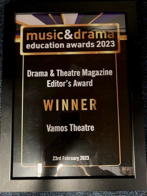 Vamos Theatre wins Drama & Theatre Magazine Editor’s Award for its educational drama resources.